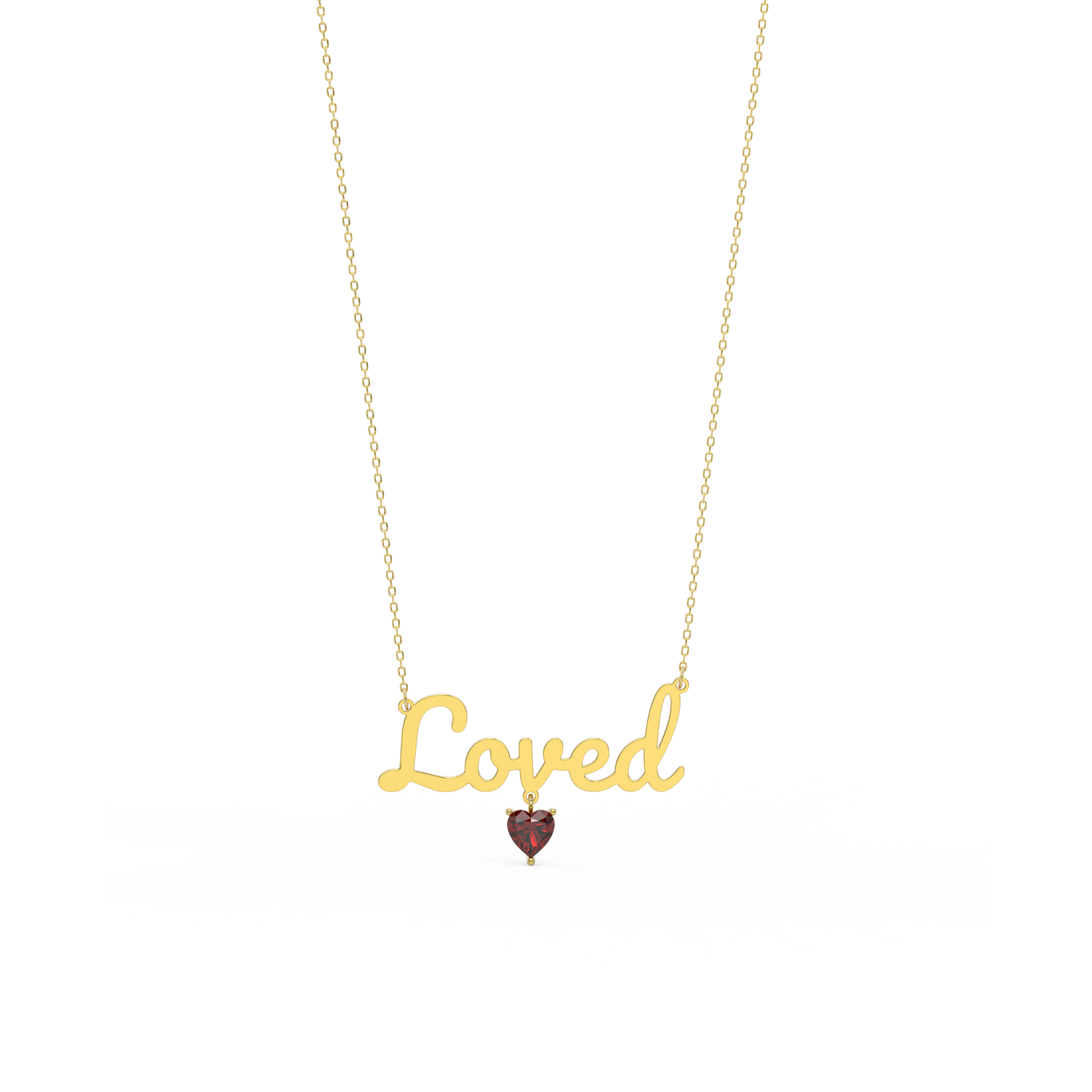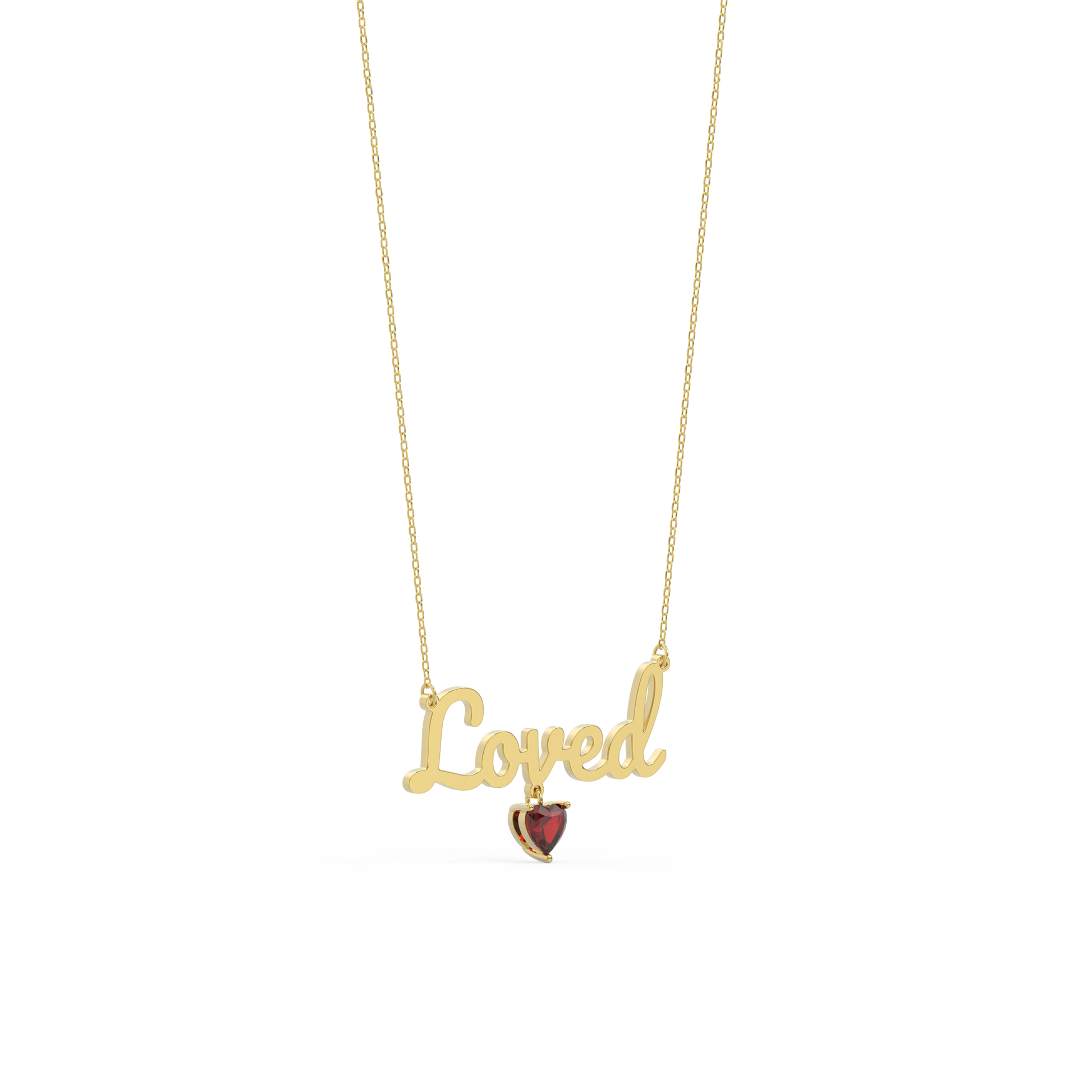 Sleek and seamless, this custom name necklace flows like a single stroke — ending in a heart-shaped birthstone that captures your story in full.