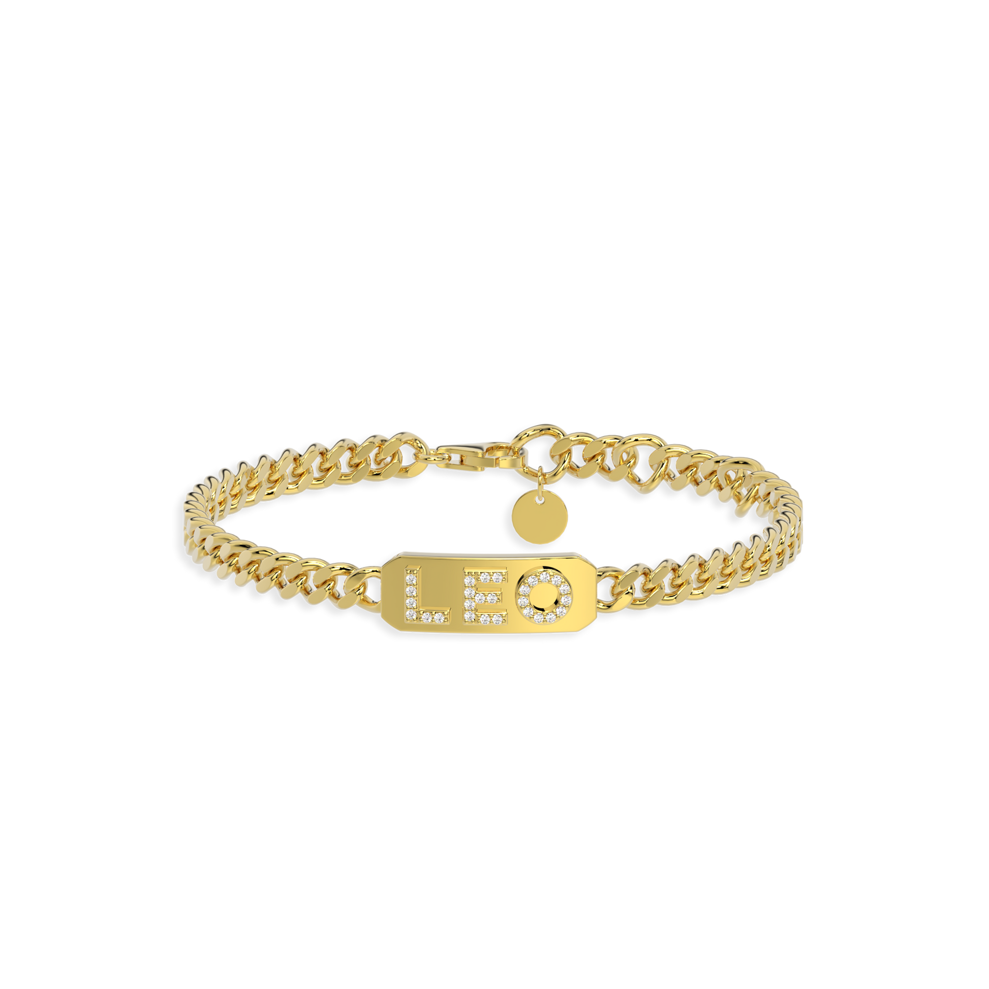 18k Gold Plated ID Bar Pavé Letter ID Bar Curb Chain Bracelet His & Hers ID Bar AW24B001G