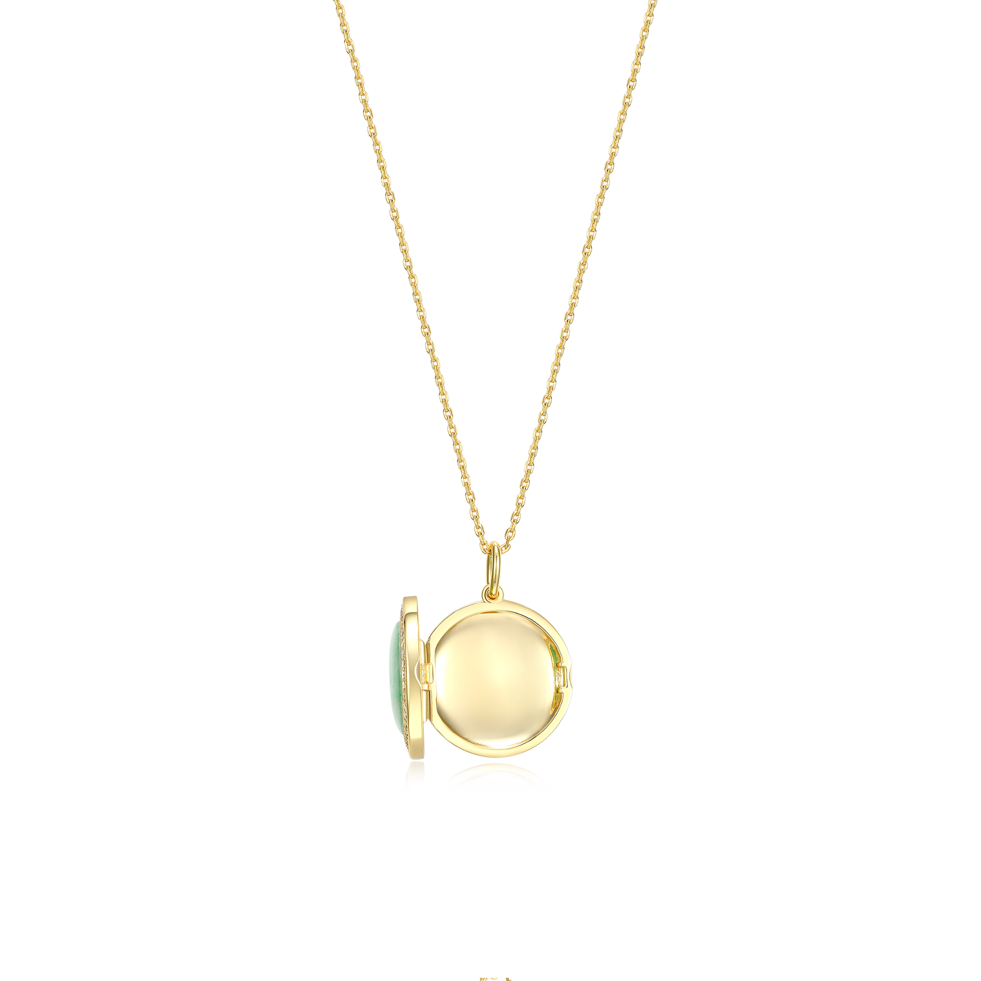A timeless fusion of elegance and emotion, the Jade Memories Serenity Photo Locket features a luminous jade front framed in shimmering gold and sparkling accents. Open the locket to reveal a place for a personalized photo and optional engraving — perfect for holding loved ones, special dates, or meaningful words close to your heart. A thoughtful gift for anniversaries, birthdays, or moments worth remembering.