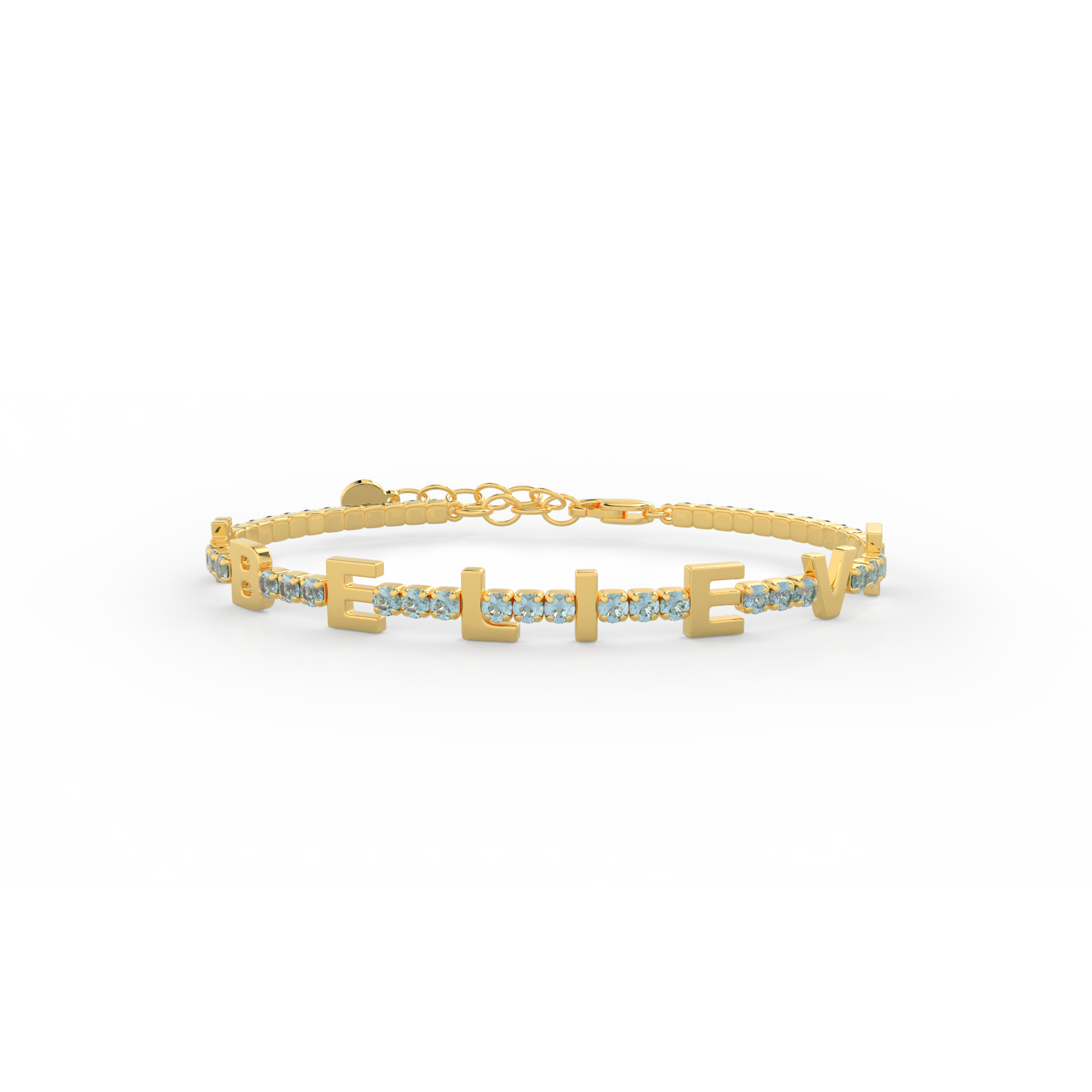 Aquamarine Birthstone Tennis Bracelet 18K yellow Gold SB001B