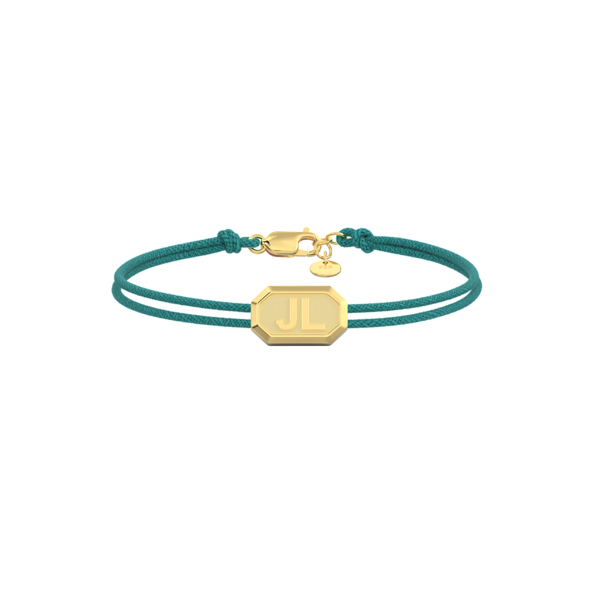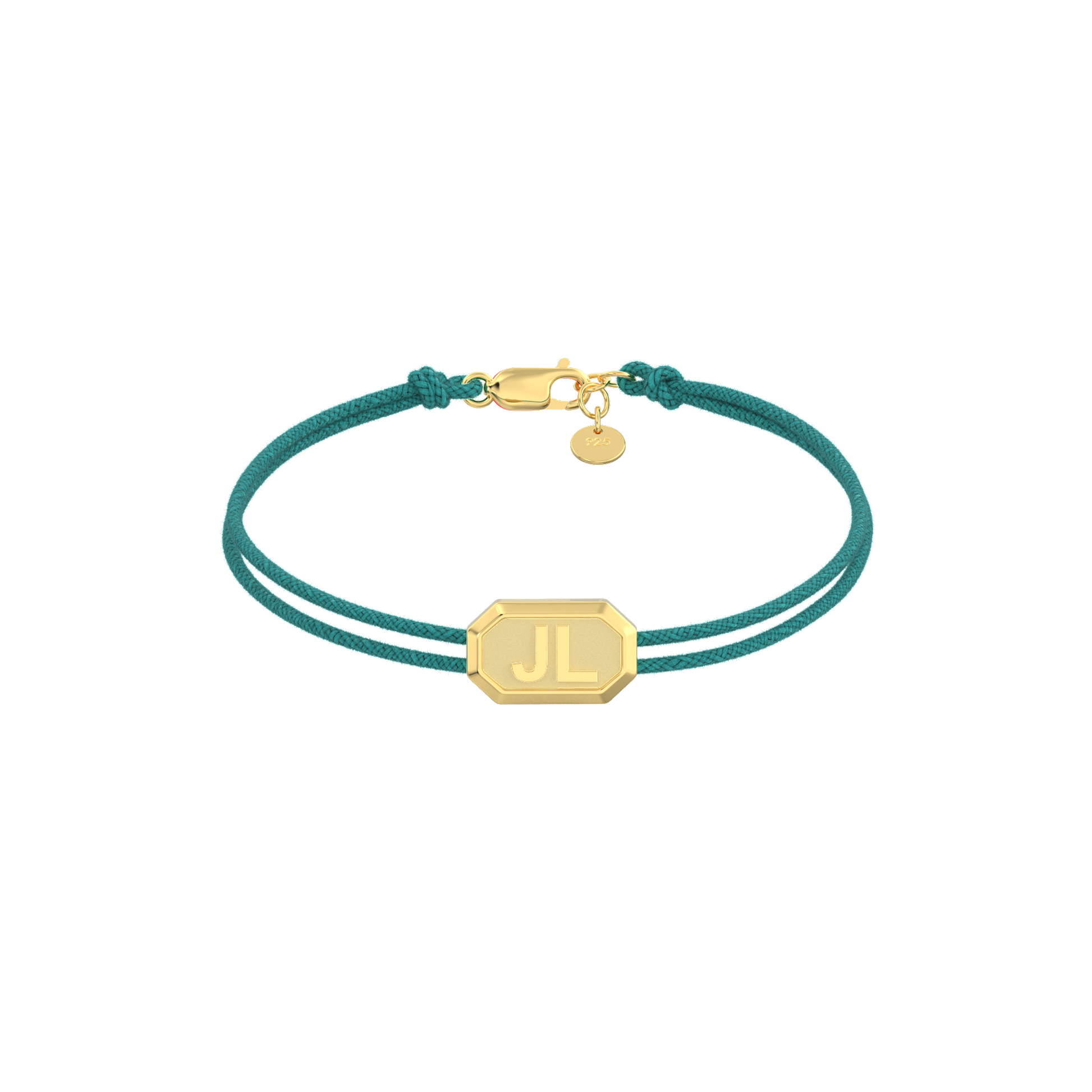 Personalized initials engraved on faceted metal beads. Add meaning, shine, and style to your wrist with your choice of shape, cord, and engraving.