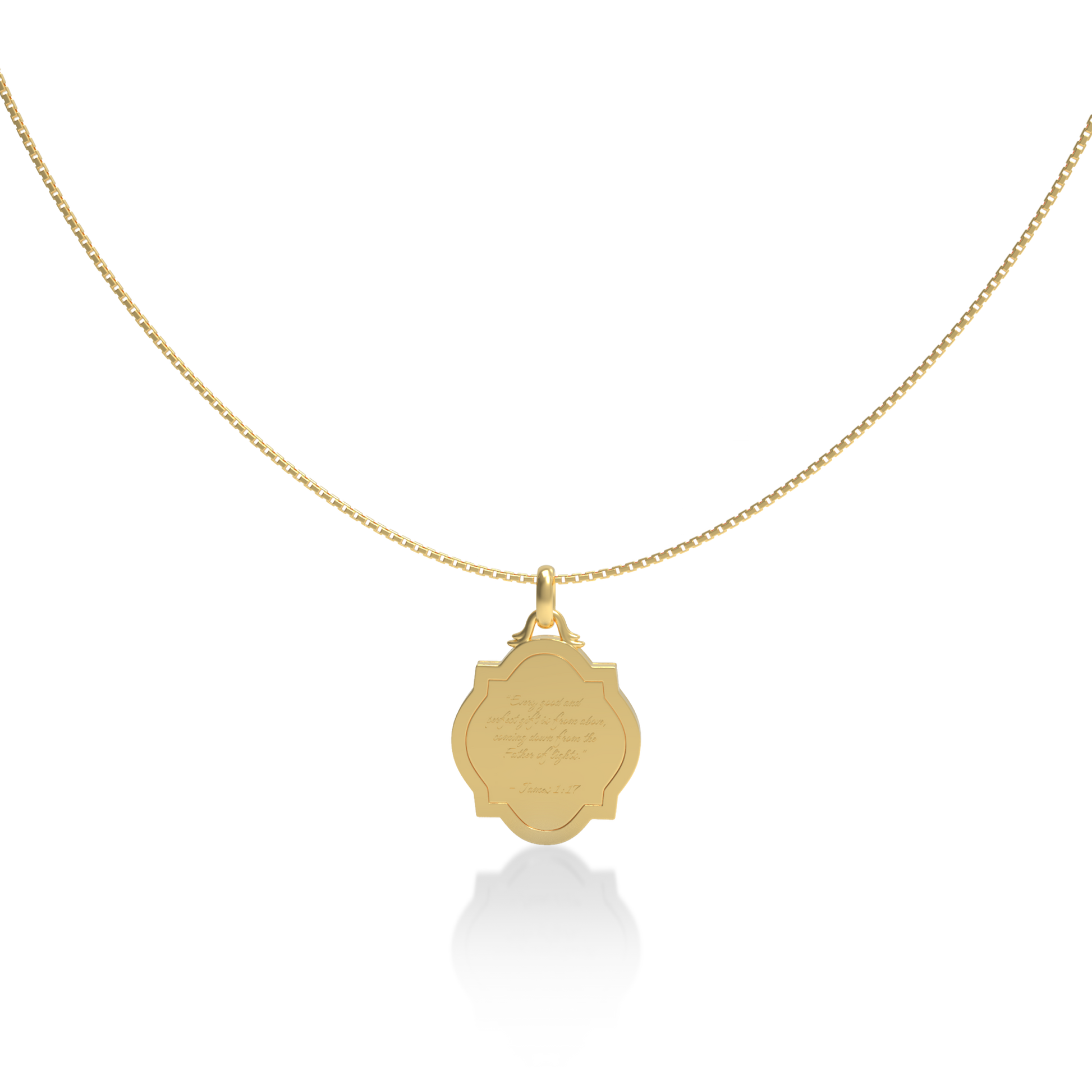 Shaped like a sacred frame and crowned with diamond-cut edges, the Gloria Pendant surrounds your custom relief with radiant brilliance. The center is rendered in matte for a soft, spiritual contrast. Engrave your message on the back to honor faith, family, or memory. A timeless symbol of devotion and light.