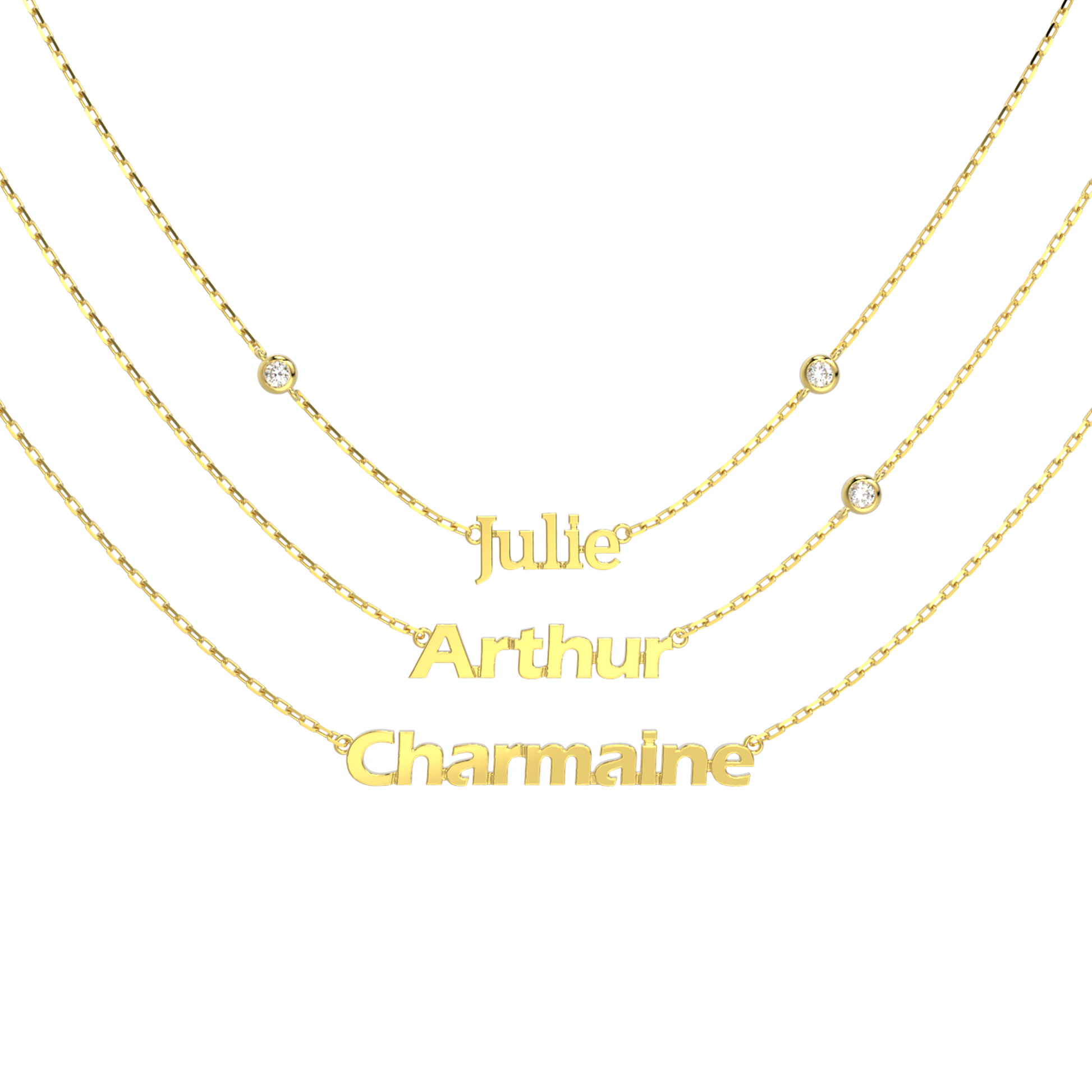 Personalized name necklace with optional zircon accents — each stone symbolizing love, memory, or connection. Elegant, meaningful, and made to shine