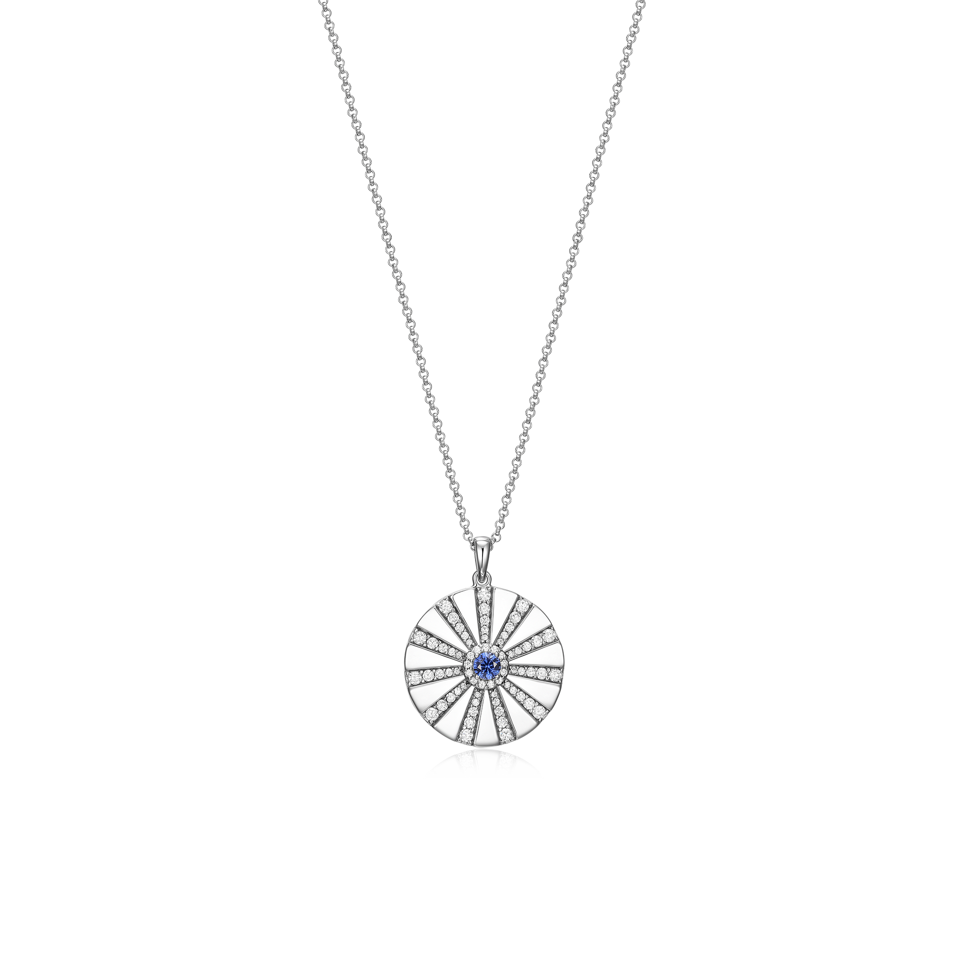 The Modern Radiance Locket channels inner brilliance through a radiant circular form. At its heart, a star-like blue stone shines boldly, surrounded by outward-reaching cubic zirconia rays—symbolizing faith, hope, and the enduring strength that flows from within. On the reverse, a dedicated engraving area allows you to inscribe a name, a date, or a heartfelt message. While it doesn’t hold a photo, it holds something just as lasting—your story, etched in light. A sleek, luminous keepsake designed to honor who you are and what you carry in your heart.