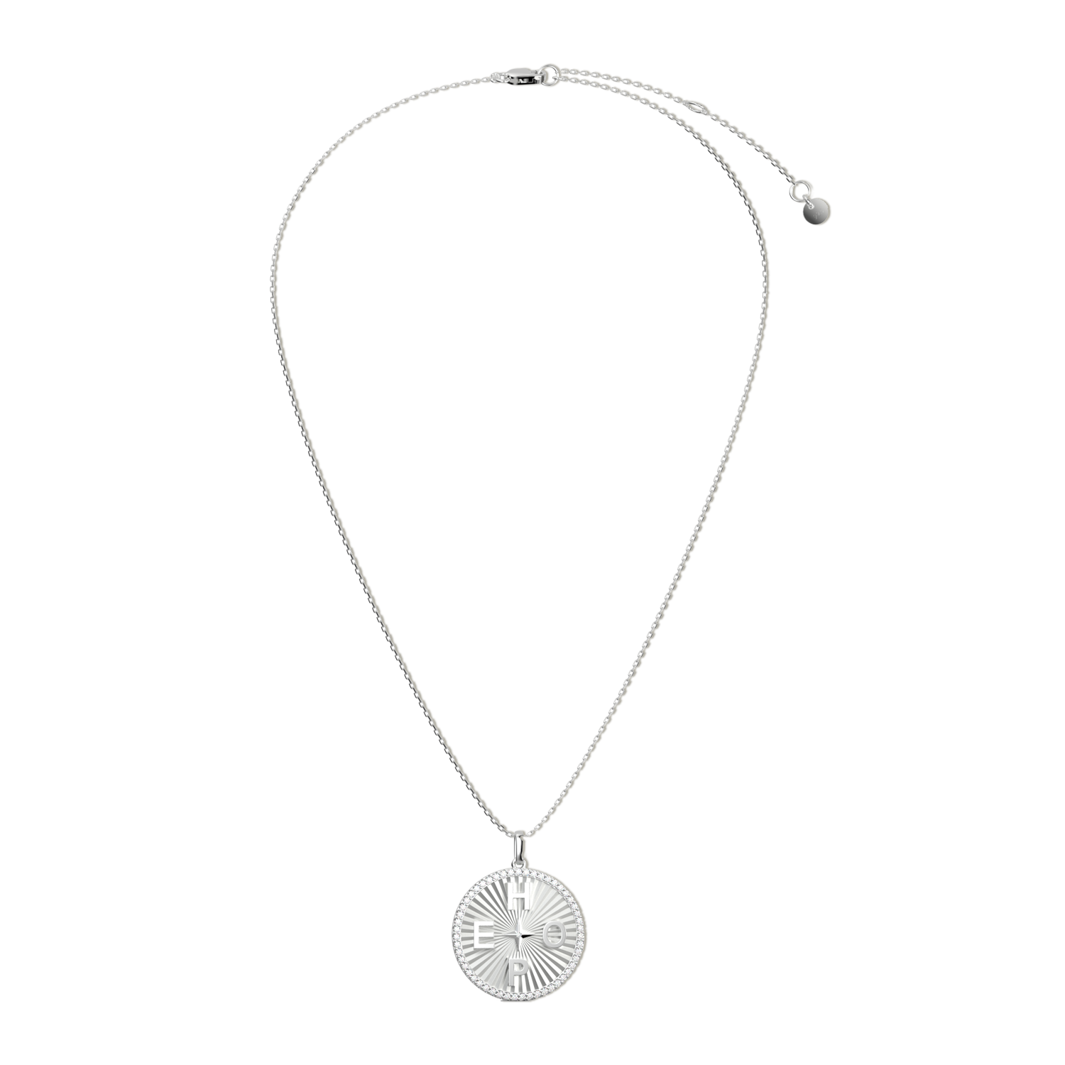 Rhodium Plated Personal Story Medallion Necklace – Lucky Symbol & Engravable(Pleated)AW24N007B